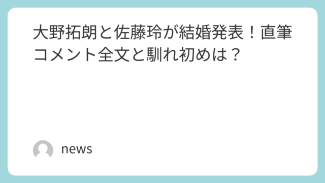 大野拓朗と佐藤玲が結婚を発表。直筆コメント全文や馴れ初め、二人の経歴と世間の反応をまとめました。