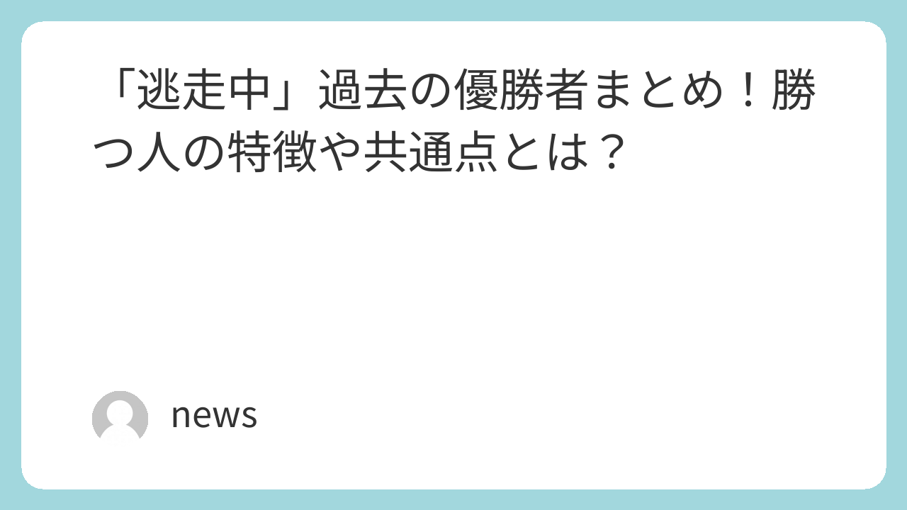 逃走中 過去の優勝者(逃走成功者)一覧【年代順まとめ】