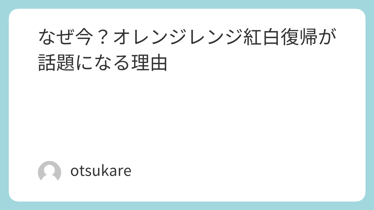 ORANGE RANGEの復帰は、まさに世代を“つなぐ”存在としての象徴と言えそうです。