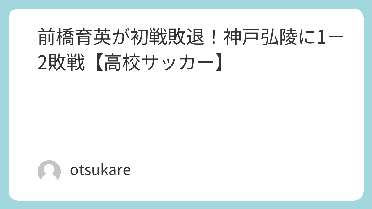 前回王者の前橋育英が、 2回戦で神戸弘陵に1-2で敗戦。