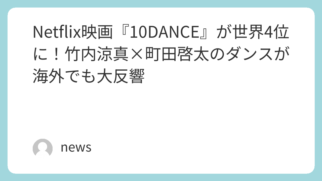Netflix『10DANCE』がいきなり世界4位!ランクイン